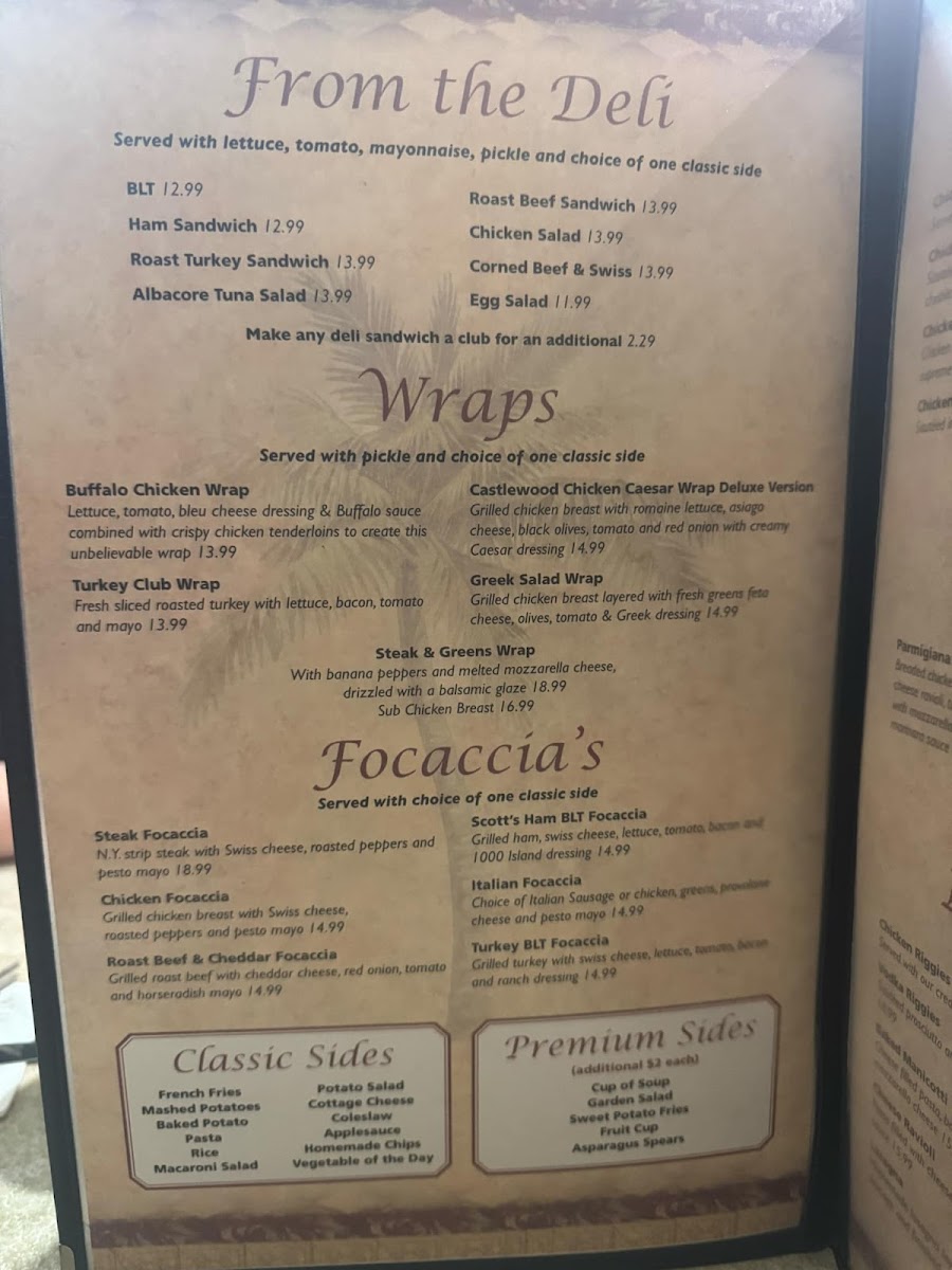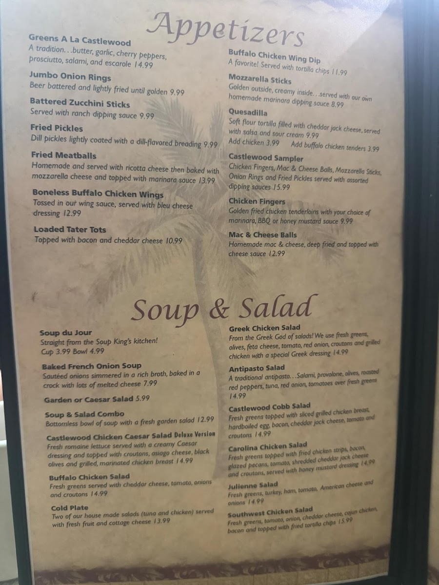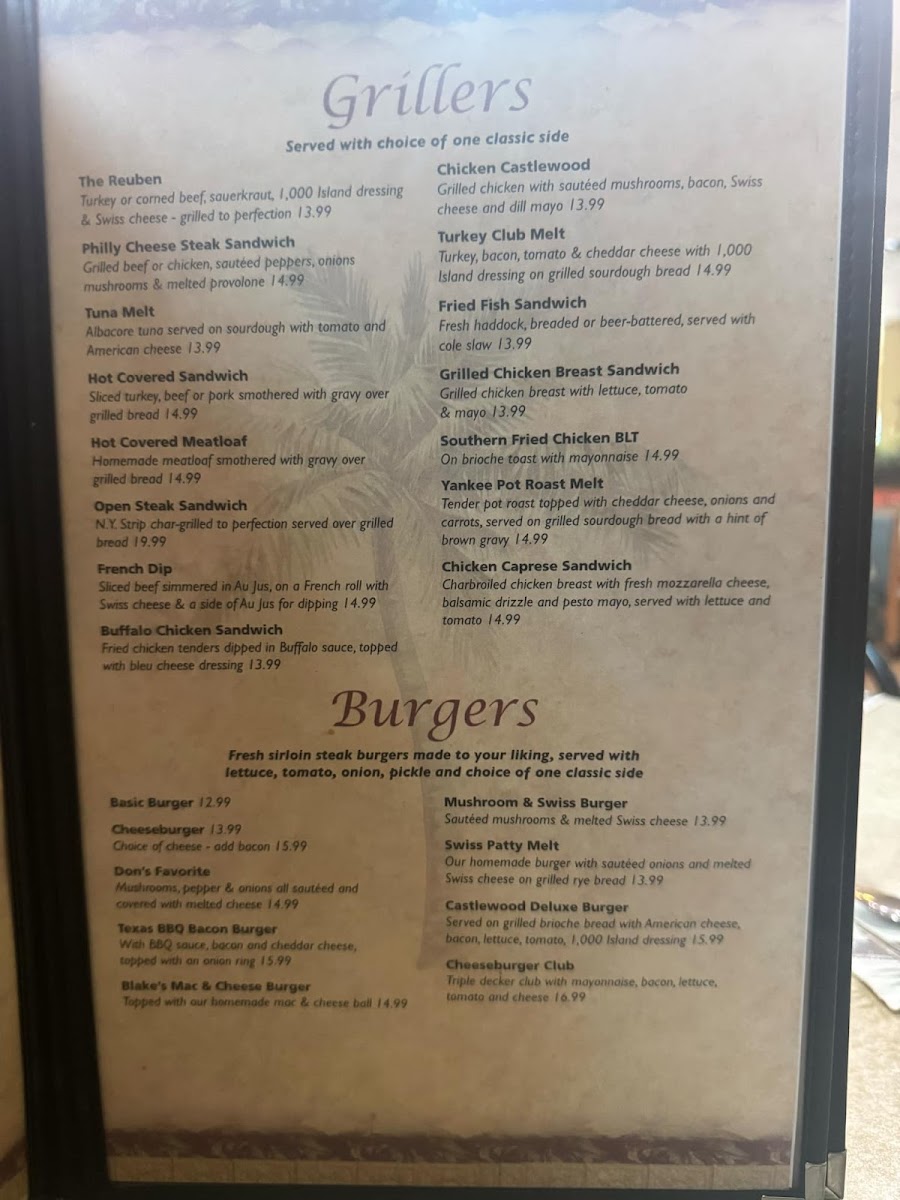 Castlewood Cafe Menu