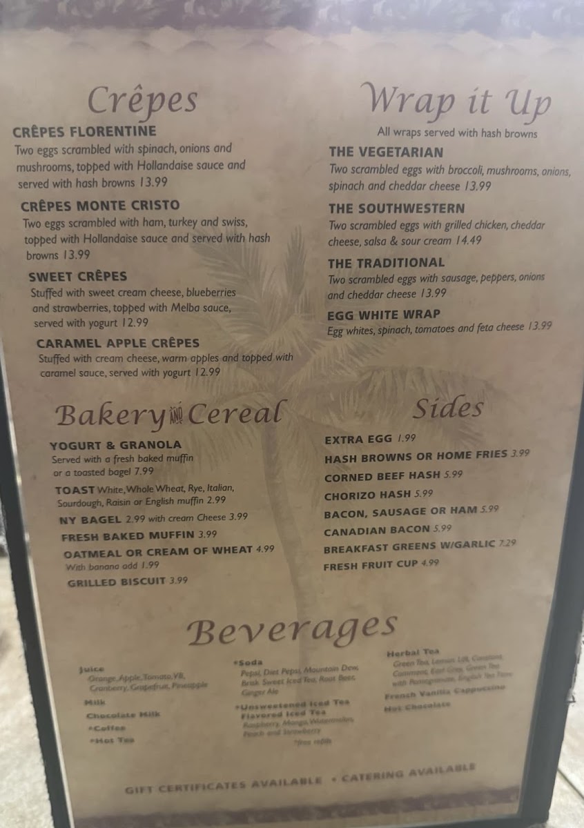 Castlewood Cafe offers a straightforward and welcoming menu that fits its cozy, casual atmosphere. The selections evoke the comfort of a neighborhood favorite where breakfast and lunch come with familiar flavors and satisfying portions. Whether you’re starting your day with a cup of coffee, eggs prepared just right, or a rich Florentine Benedict, the menu invites a relaxed meal at any hour.